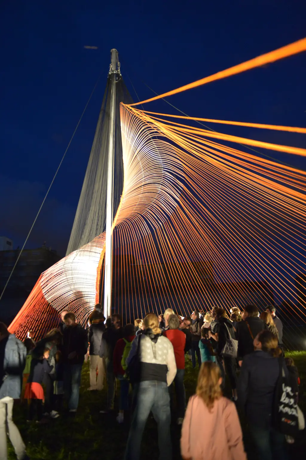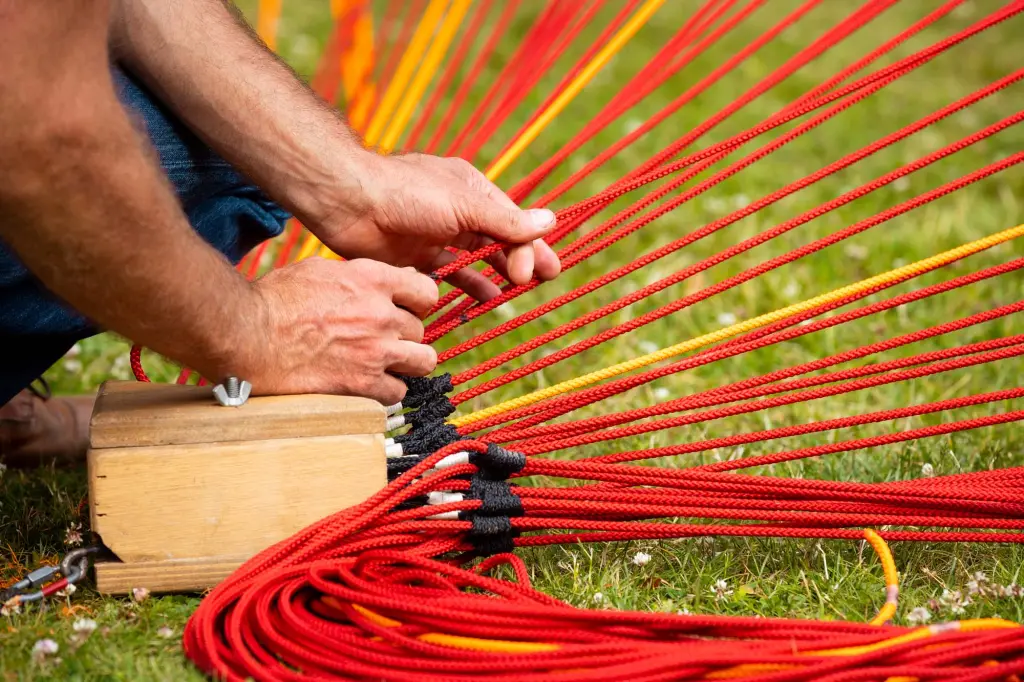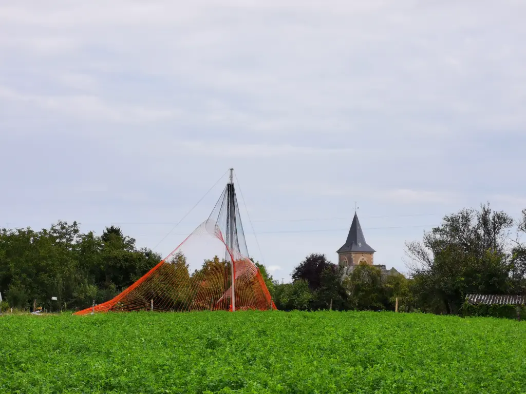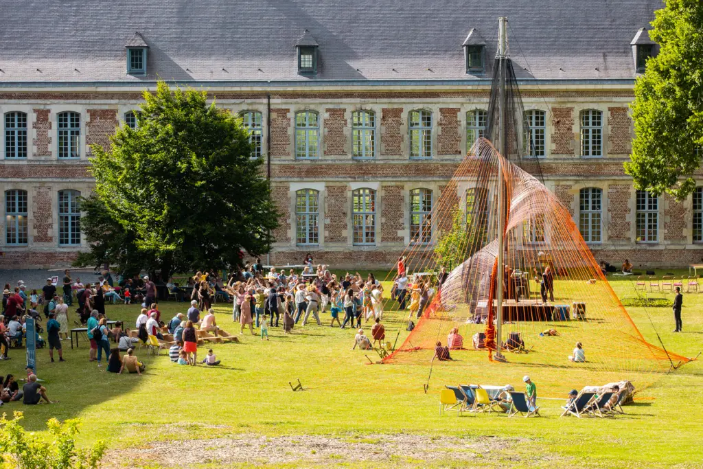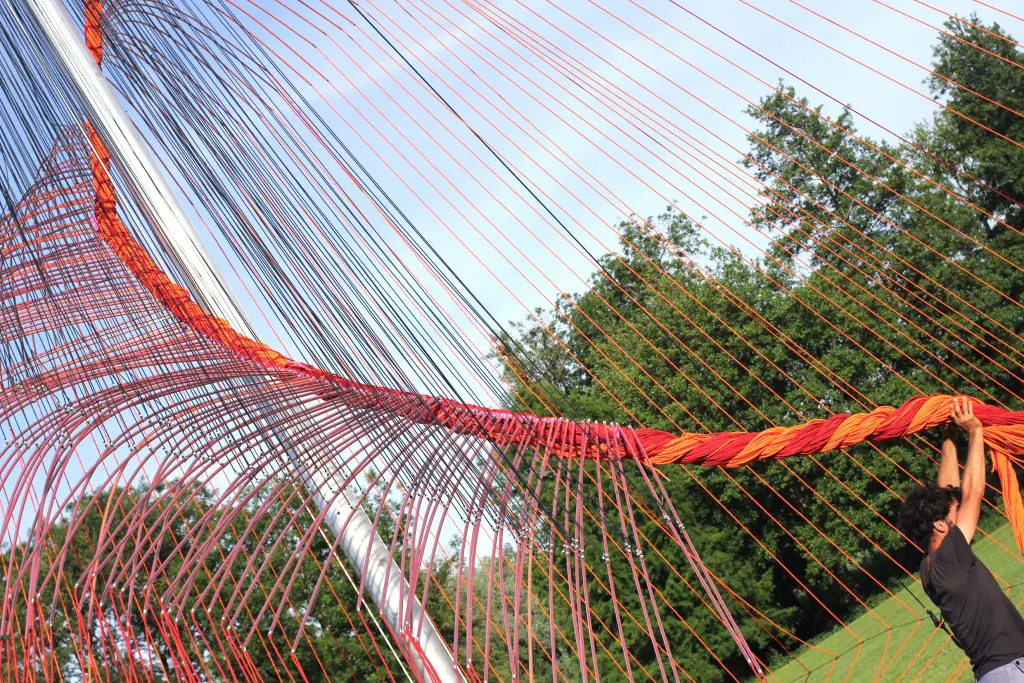 A monumental volume, made up of 8,000 metres of rope meticulously woven and assembled by five performers. From their gestural score - precisely coordinated and articulated around a mast - emerges a place, an ephemeral matrix, an extrapolation. Here, Jordi Galí explores the relationship between the body and the object through the staging of an installation, an improbable architectural construction. Its form appears at the end of the performance, revealing in reverse the meaning and necessity of each gesture produced. As the installation unfolds, spectators will be free to choose their own time frame, to come and go as they please to witness and experience this space in the making.