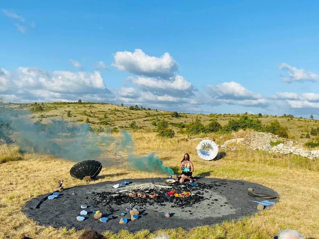 Nebula explores the continuity between the human body and nature as a meeting of force fields. Through a search for materials and gestures that are both archaic and telluric, metamorphoses occur. Aiming to reveal the original state of the elements and their magical potential. Like a healing ritual, Nebula is also a journey into the unknown, a moment of eclipse to glimpse other possible worlds. The future and the past come together, and the spiralling passage of time leads us into a ‘prehistoric science fiction’.