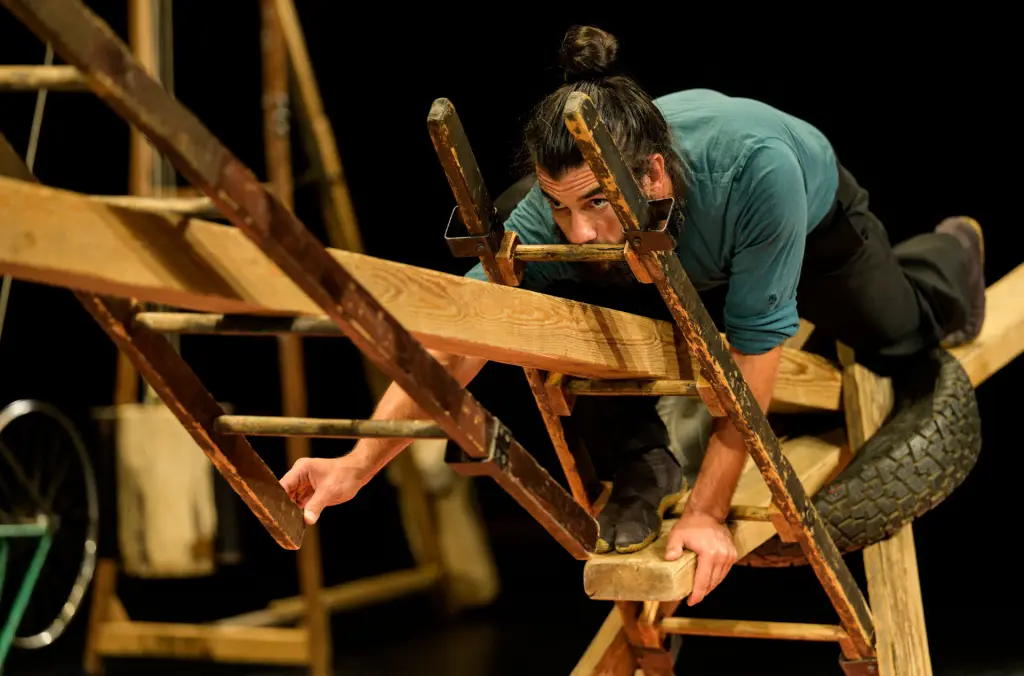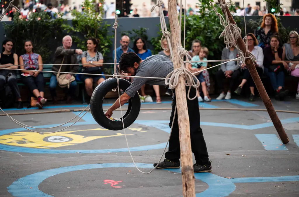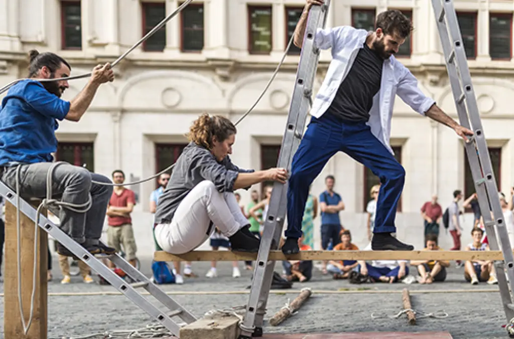Un équilibre précaire et précis dans lequel corps, objets et spectateurs partagent leur présence, le temps d'une suspension