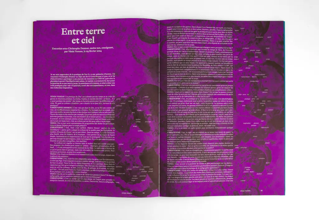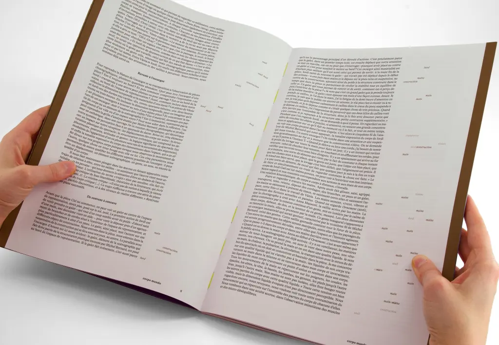 Projet éditorial collectif réalisé en autoédition qui explore l’interaction entre le corps et le monde à travers le prisme chorégraphique, ouvert à d’autres domaines et pratiques