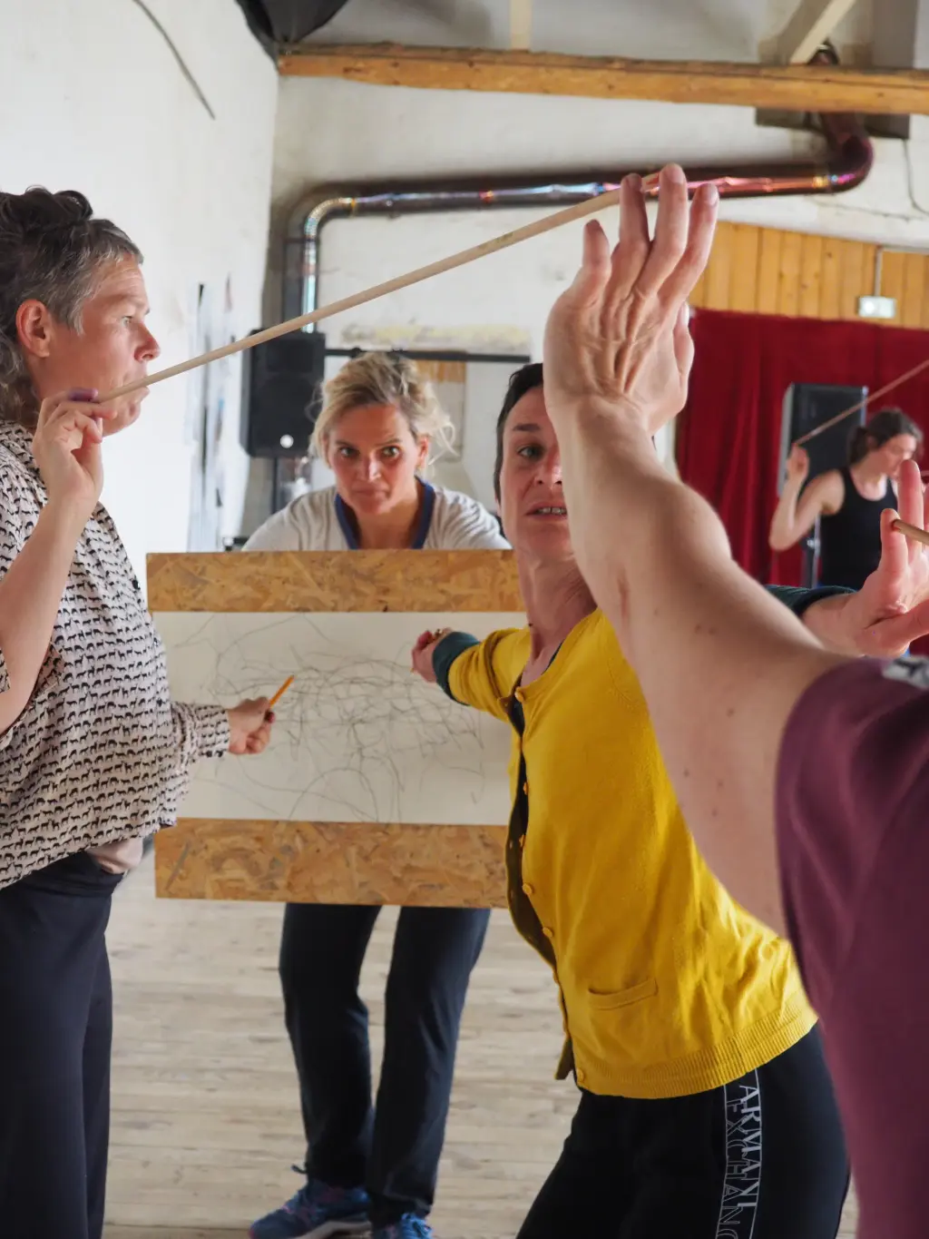 Il s’est agi avec ce laboratoire, organisé dans le cadre de l’association d’Arrangement Provisoire avec les Scènes Croisées et en complicité avec la Cie L’Hiver Nu, de poursuivre en 2023 une exploration sensible et une mise en commun structurée des intuitions et savoirs communs, de tenter la fabrication d’outils partagés, tant esthétiques que pédagogiques, qui permettraient collectivement et individuellement d’élargir les propres pratiques de transmission et de création.