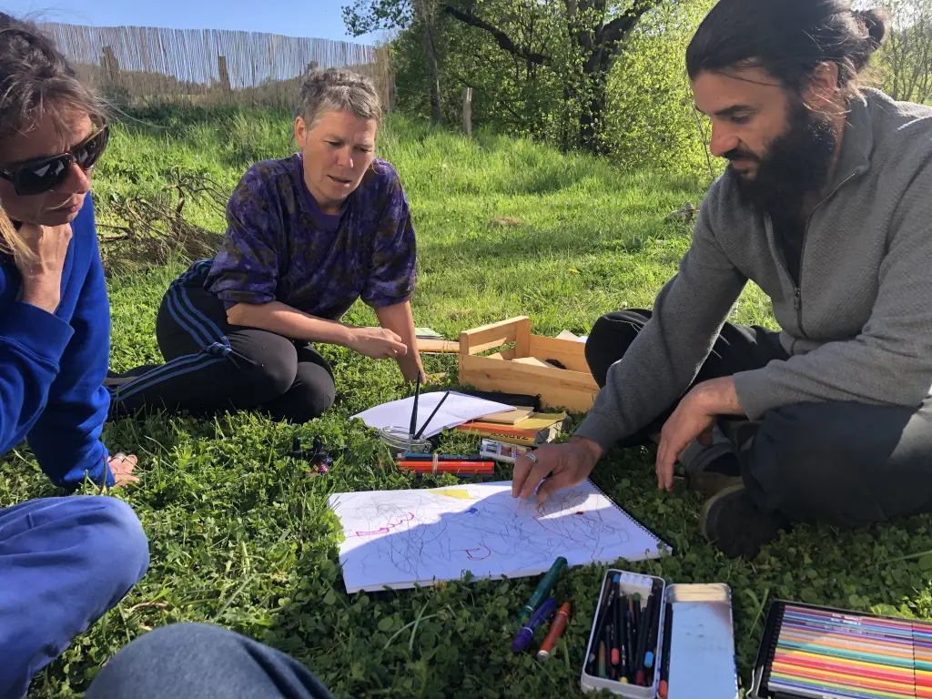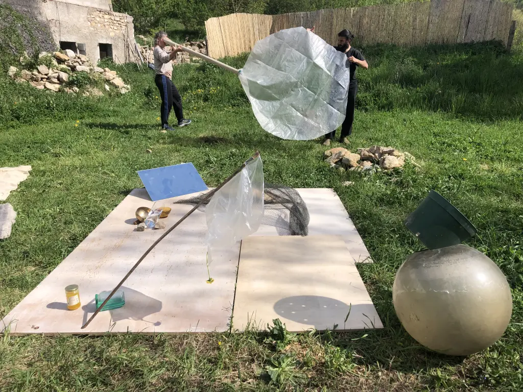 Tout au long de la semaine plusieurs axes de discussion et de tentatives ont émergé autour des thématiques : Apprentissage, Pratique, Soin, Performatif, Matière, Espace et Parole.