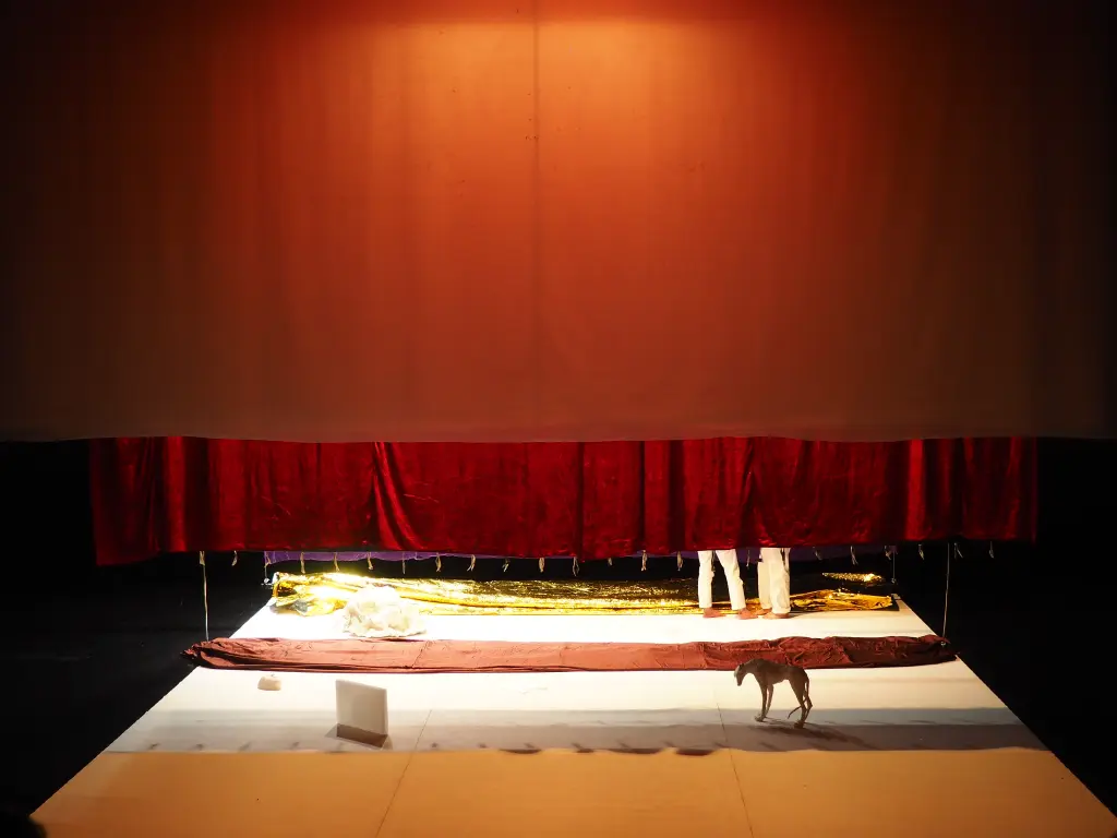 Un jeu de recouvrements et révélations de deux corps dans un paysage changeant. Installation performative cocréé avec Anna Massoni