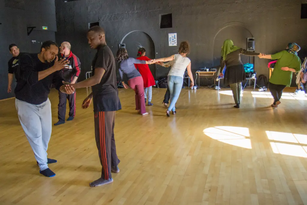 Des structures de corps composent le spectacle ORBES : architectures éphémères résultant d’efforts de traction et de compression entre les interprèt.e.s, situations d’équilibre choral composées de déséquilibres individuels. Cet atelier en explore les principes simplifiés.