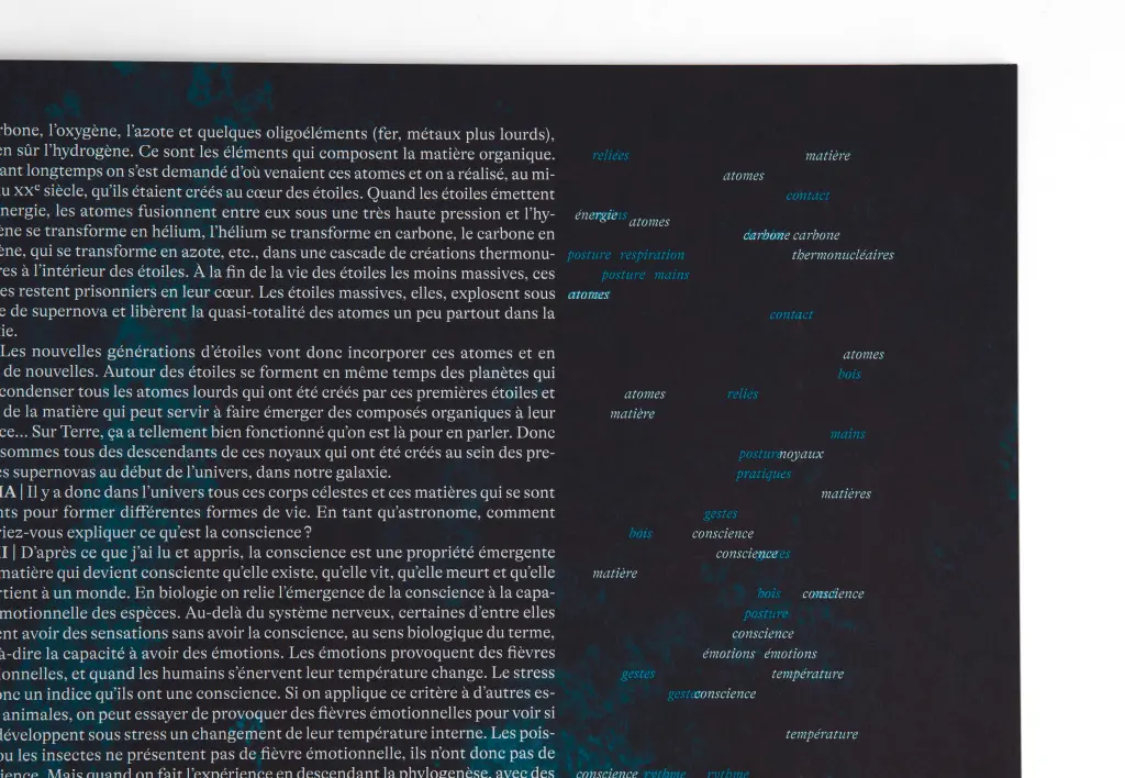 Au comité d’édition composé des auteur.rice.s et critiques Alix de Morant, Charlotte Imbault, Wilson Le Personnic, Marie Pons et Vânia Vaneau et Jordi Galí, s’ajoutent les écritures invitées de Emma Merabet (chercheuse en arts du spectacle) et Jérémy Damian (antrhopologue et danseur) ainsi que la participation de Christophe Desmur (moine zen), Rémi Cabanac (astronome et directeur de l’Observatoire du Pic du Midi), Nicolas Lelièvre (architecte et plasticien) et Nermin Salepci (matématicienne). Une carte blanche a été offerte au photographe et danseur David Leborgne.