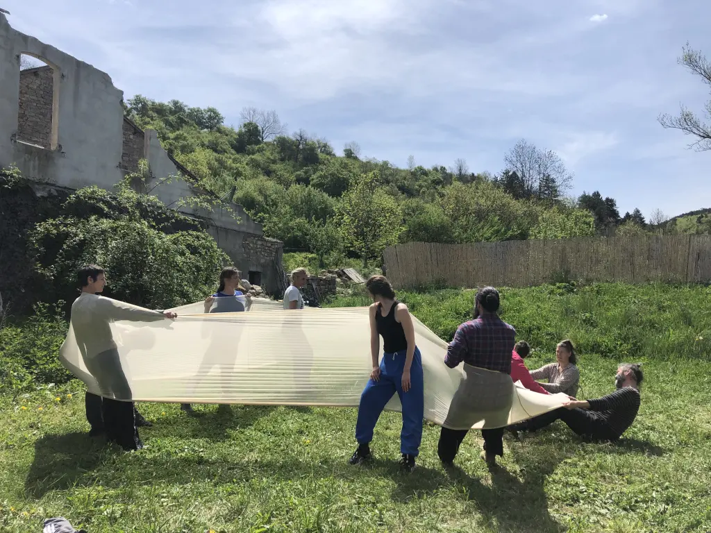 Tout au long de la semaine plusieurs axes de discussion et de tentatives ont émergé autour des thématiques : Apprentissage, Pratique, Soin, Performatif, Matière, Espace et Parole.