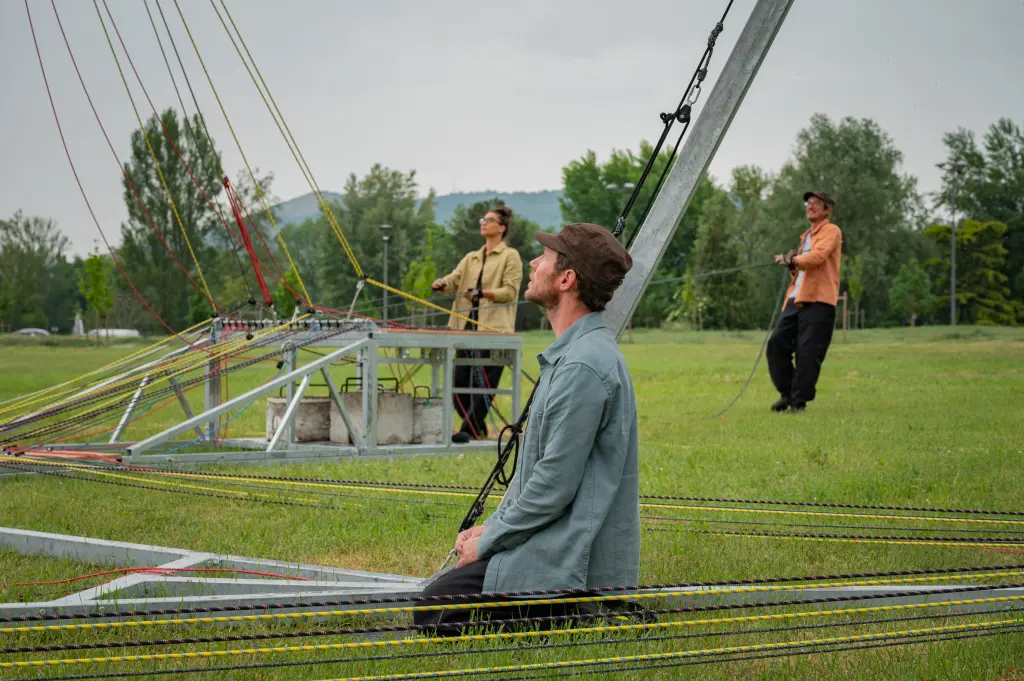 Le latin désigne par anima le souffle, la respiration. Et le rapproche ensuite de l’âme, de l’esprit qui anime les corps. Cette proposition donne à voir le jaillissement d’une forme ramifiée, son apparition et disparition. Les interprèt.e.s, organisé.e.s en cercle autour, viennent progressivement la déployer sur une hauteur de 15m et l’animer. Par le mouvement de l’ensemble, des corps et des matières, le vide entre les parties prend forme et volume.