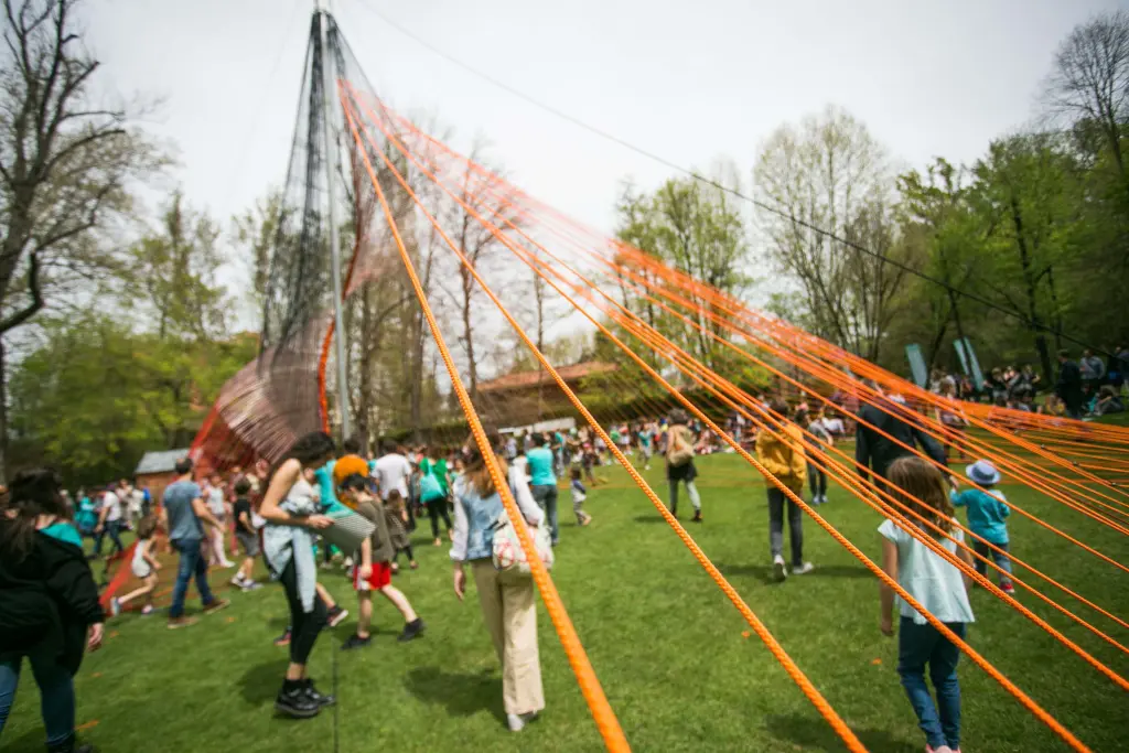 Un volume monumental, constitué de 8000m de cordage minutieusement tissés et assemblés par cinq interprètes. De leur partition gestuelle – précisément coordonnée et articulée autour d’un mât – surgit un lieu, une matrice éphémère, une extrapolation. Jordi Galí explore ici la relation du corps à l’objet à travers la mise en scène d’une installation, construction architecturale improbable. Sa forme nous apparaît à la fin de la performance, dévoilant à rebours le sens et la nécessité de chaque geste produit. Au cours de son élaboration, les spectateur.trice.s seront libre de choisir sa temporalité, d’aller et venir à son gré pour assister et faire l’expérience de cet espace en train de se créer.