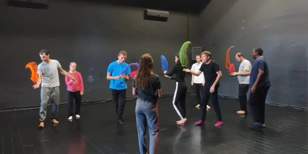 Ainsi, différentes pratiques d’improvisation et de composition qui passent aussi par l’écriture, le dessin et par l’utilisation de matières, interrogent comment le corps se relie à son environnement, l’humain avec le non humain. Pour explorer et affiner les enchevêtrements entre la perception, le mouvement et l’imaginaire.